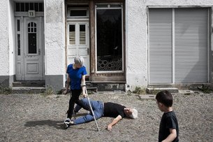 Das Geschehen auf der Bühne greift immer mehr zur griechische Tragödie, zu Mythen und Opferung, und berührt anthropologische Ebenen mit den Stammtänzen, mit biblischen Motiven. Die Körper bewegen sich konvulsiv, wehren sich gegeneinander und miteinander, drängen sich zusammen, gehen übereinander, untereinander, klettern hoch und herunter, wirken unmenschlich. Der Blick konzentriert sich auf das Geschehen, auf Details, auf choreographische Elemente, auf Gegenstände, auf die Auseinandersetzung mit den Gegenständen, auf ihre Wirkung, auf Handbewegungen, auf körperliche Interventionen, die bis zu Gewalt und Körpererniedrigung eskalieren. Man hört Publikumsreaktionen, wenn ein weiblicher Körper immer wieder auf den Boden fällt. Die Figuren versuchen, dieser Macht zu wiederstehen, sie sind aber moribund, nackt, hilflos. Die dunkle Fläche des Orchesterloches und die innere Architektur des Zuschauersaales verstärken eine Distanzierung vom Publikum. Die Figuren sind Geschöpfe einer Kraft, die für diese unerreichbar bleibt.